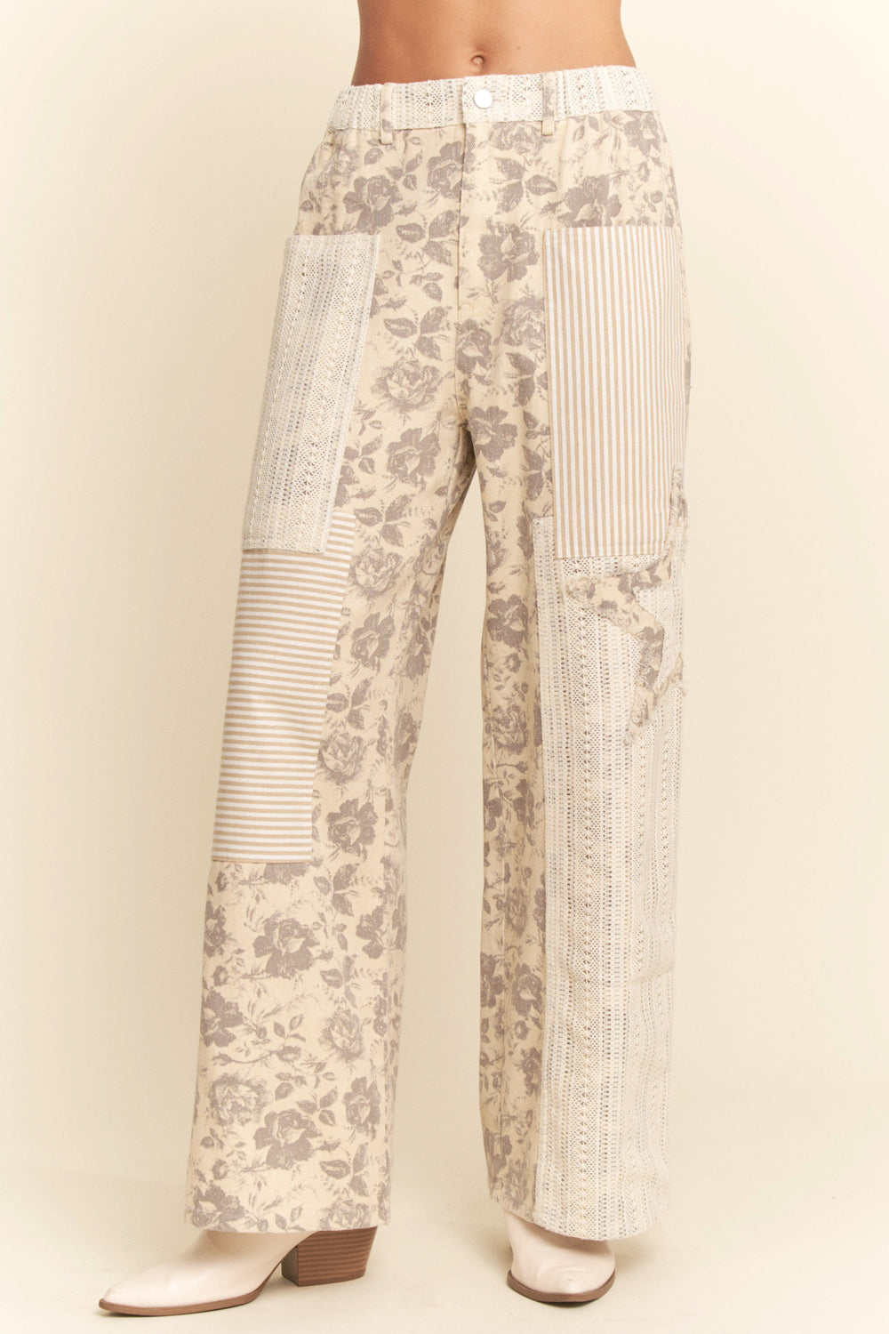 Floral And Stripe Pants