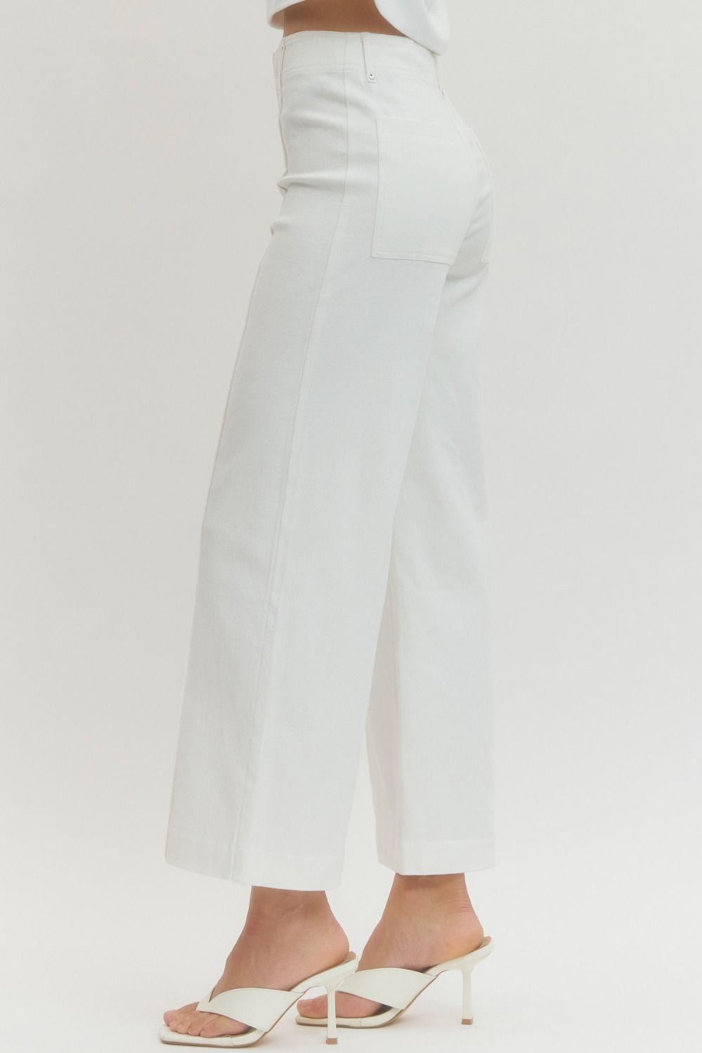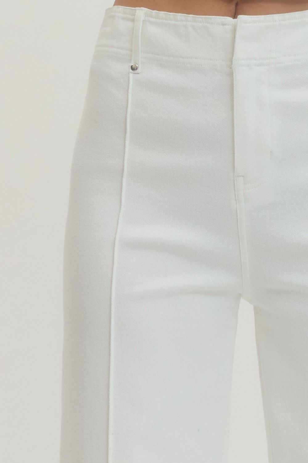 Elevate your everyday wardrobe with these crisp white pants featuring eye-catching studded details. Cut to a flattering ankle length, they strike the perfect balance between classic and contemporary. The subtle embellishments add an edgy touch that transforms a simple silhouette into a statement piece. Versatile enough for casual outings or dressed up for evening occasions, these pants are a modern essential for any style-conscious wardrobe.