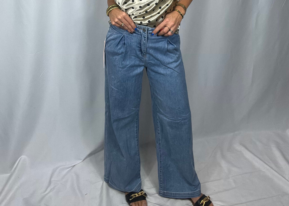 Get comfy and cool in these Slouchy Wide Leg Denim jeans. Featuring a relaxed fit with a medium wash, they offer the perfect blend of laid-back style and effortless movement. Dress them up or down for endless playful outfit possibilities!