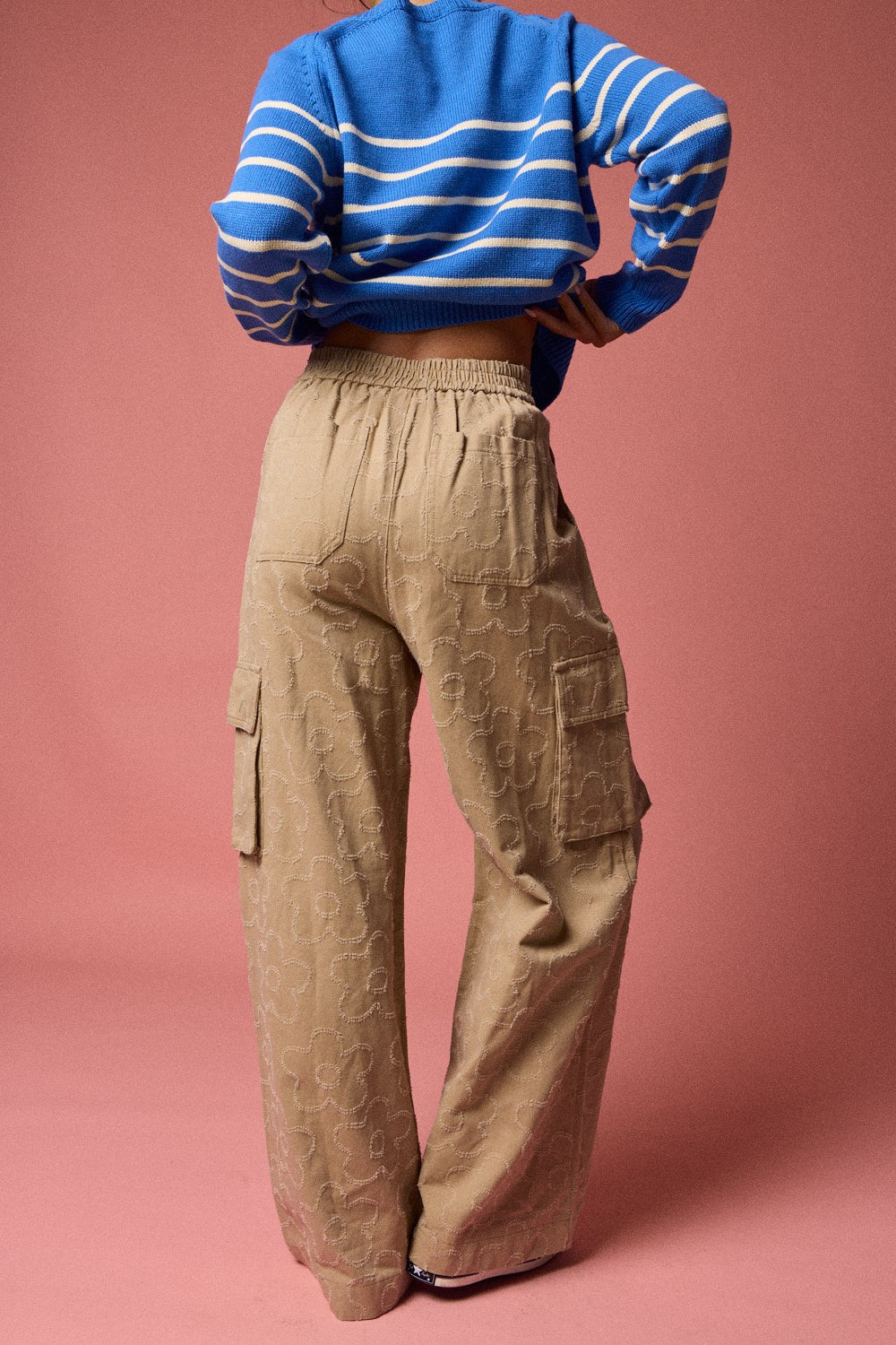 The Adeline Cargo Pants blend utility with unexpected charm. These khaki cargo pants feature delicate white embroidered flowers scattered across the fabric, adding a whimsical touch to a classic silhouette. Multiple pockets keep your essentials within reach, while the relaxed fit ensures all-day comfort. Perfect for those who refuse to choose between practical and pretty.