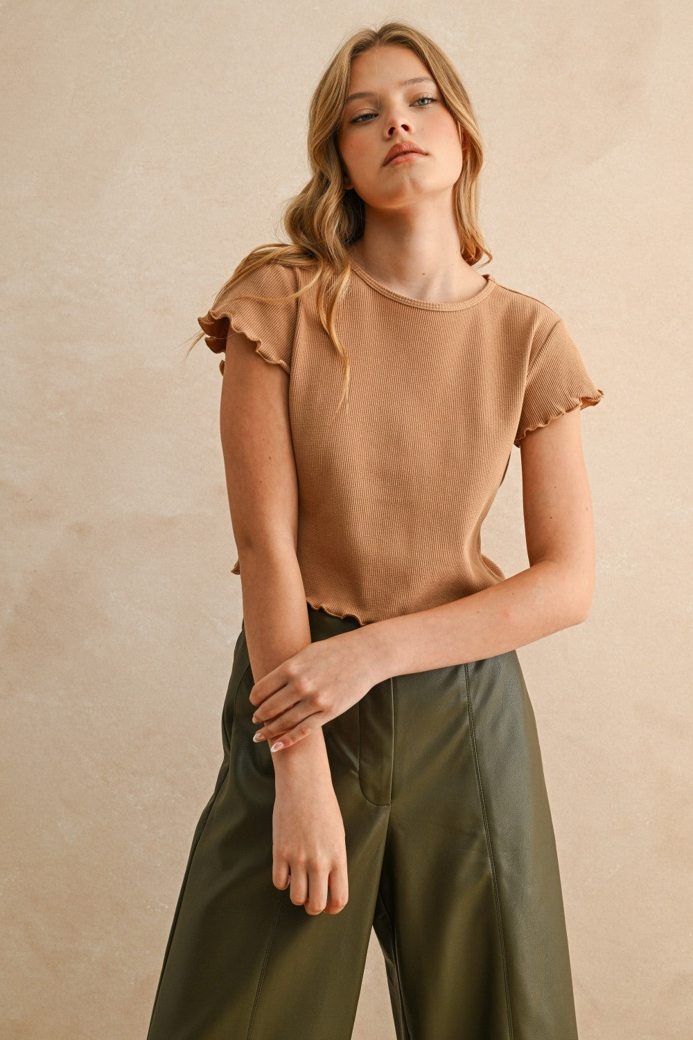 Effortless comfort meets playful style with this mini waffle fabric short sleeve top. The lightweight, breathable weave keeps you cool throughout the day, while the classic crew neckline and relaxed fit make it perfect for casual layering or standalone wear. Versatile enough for weekend errands or cozy nights in, this wardrobe essential pairs seamlessly with jeans, shorts, or loungewear. A timeless piece that works as hard as you do.