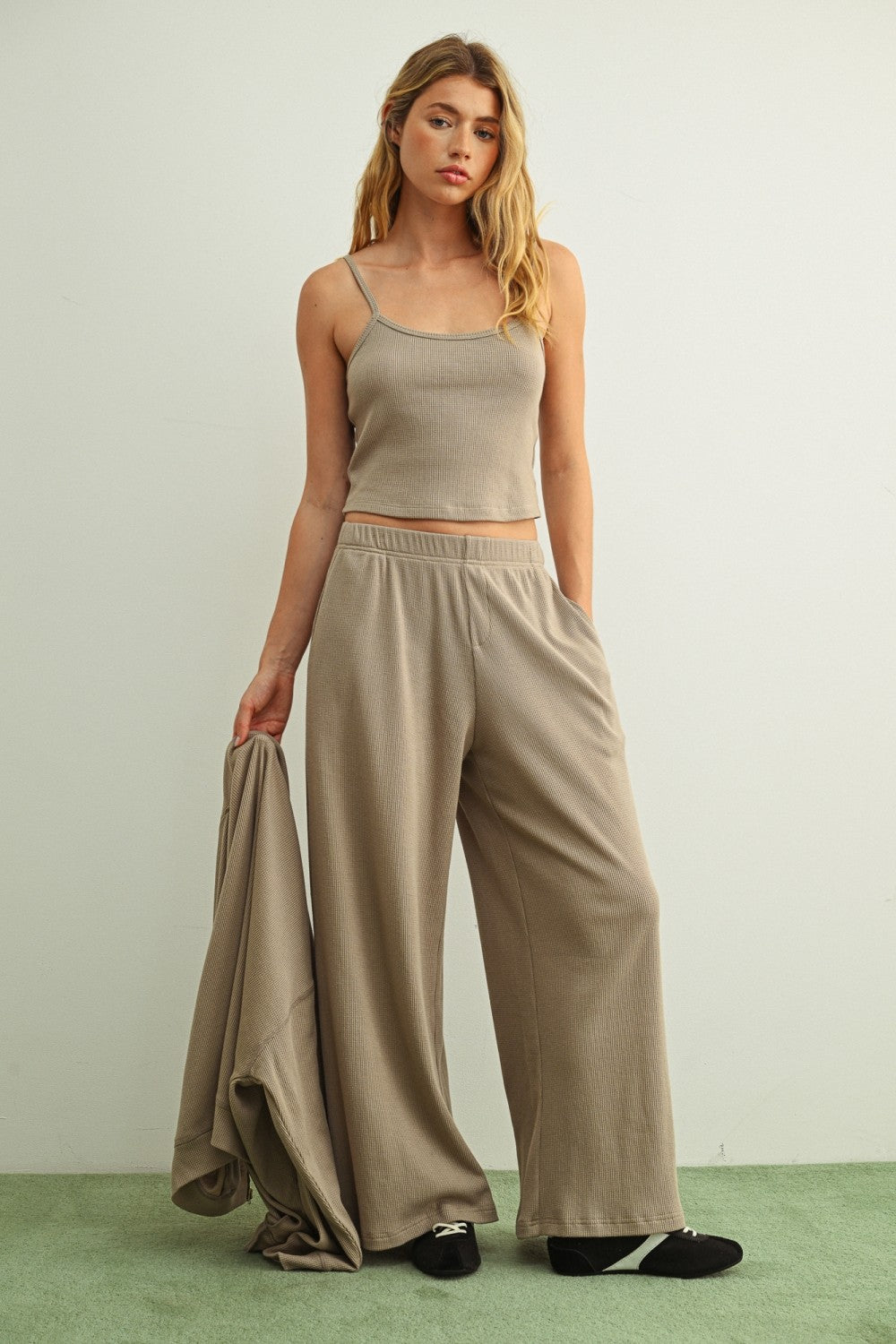 Effortless layering meets comfort in this lightweight waffle knit tank. The Say Less Tank features a relaxed fit and breathable texture, perfect for warm weather styling. Crafted in a versatile mocha tone, it pairs seamlessly with everything in your wardrobe—wear it solo or layer it under your favorite pieces. The airy waffle knit keeps you cool without sacrificing style.